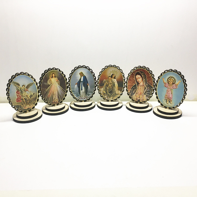 European solid wood hollow colored holy icon car home travel ornaments